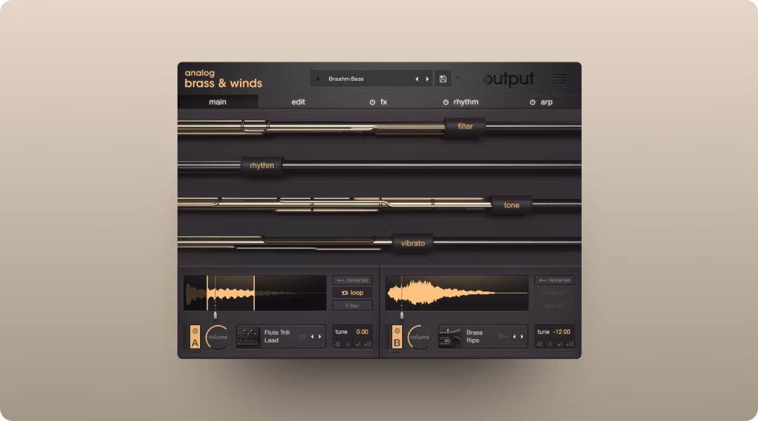 Output's Analog Brass & Winds takes a hybrid approach. It blends orchestral recordings with analog synth textures and tape processing. This works well when you need brass or woodwinds that sit somewhere between traditional and modern.