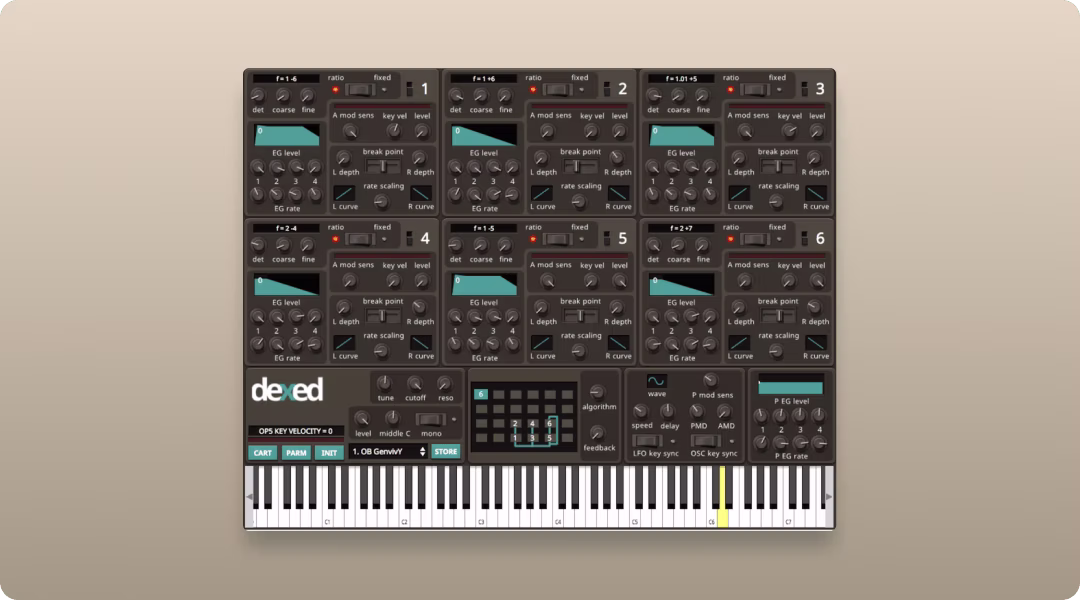 - DX7 patch compatibility: Load classic patches or design your own using the operator and algorithm structure.
