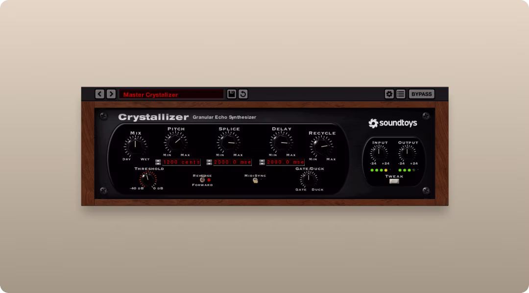 Crystallizer is a pitch-shifting delay based on classic hardware reverse-shift effects. This means you get shimmering, ethereal textures that sit behind the original chop and add depth.